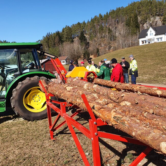 Det ble demonstrasjon av Duun vedmaskin og prøvekjøring av John Deere traktor.
