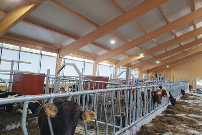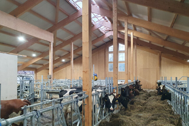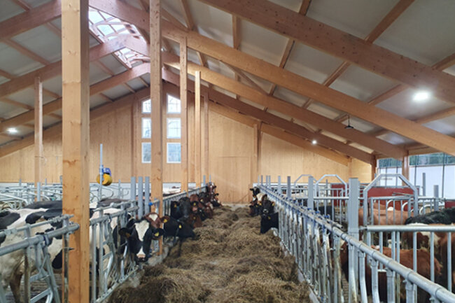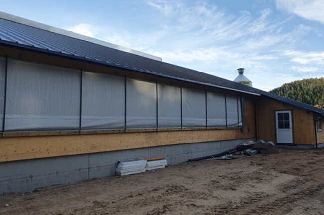 Her får du se et nytt bygg utført i massiv tre med naturlig ventilasjon og foldegardiner samt mye flott utstyr.
