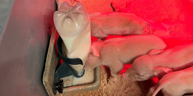 Der fôret ønskes som våtfôring sendes det gjennom en «vann-gardin» i nedløpsrøret i bingen. Dette gir optimal hygiene og lavt vannforbruk.